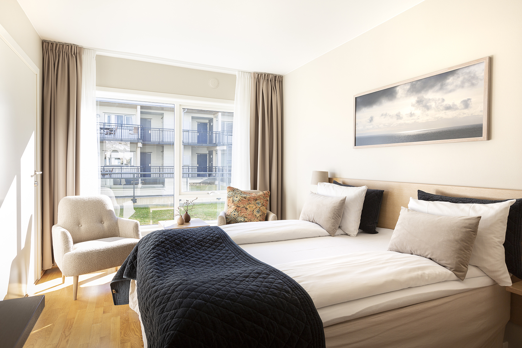 Kom deg innendørs. Legg fra deg arbeidsdagen og kjenn pulsen synke. Hotellrommene på Lindesnes Havhotell oser av kvalitet og framstår lyse og trivelige. Her vil du sove godt!